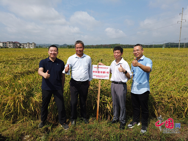 中國網/中國發展門戶網訊 (記者 王虔)千畝良田,穗滿稻黃。7月20日,中國科學院遺傳與發育生物學研究所主辦,江西省農業科學院水稻研究所、江西省上高縣農業農村局協辦,在上高縣組織實施了早粳水稻新品系“包裝設計中科發早粳1號”等品系千畝連片示范現場會。中國科學院遺傳與發育生物學研究所李家洋院士團隊培育出的三種早粳稻水稻新品系“中科發早粳1號”“中科發早粳25”和“中科發早粳23”,在這里已經進行了連續3年的種植試驗。